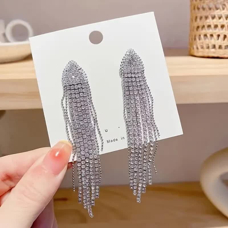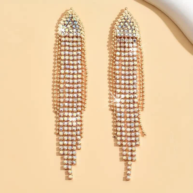このゴージャスなゴールデンタッセルラインストーンピアスは、あなたの耳元をキラキラと輝かせます。華やかなストーンと上品なゴールドのタッセルが絶妙に組み合わさり、洗練されたエレガンスを演出します。さりげない揺れ感も、おしゃれなアクセントになります。