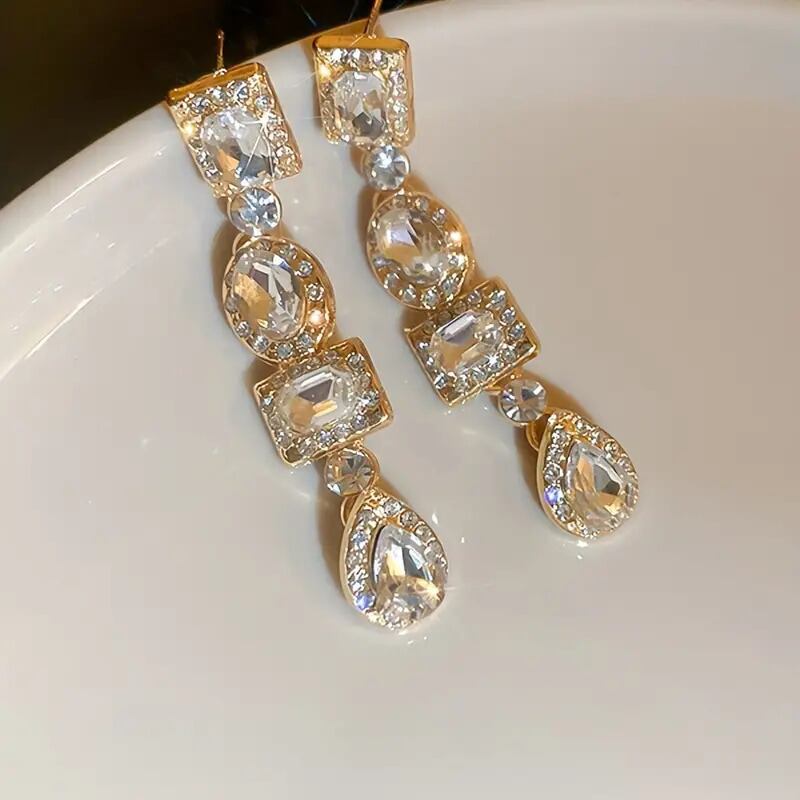 幾何学的形状がエレガントなラインストーンロングピアス。洗練されたデザインで、スタイリッシュな印象を与えます。シンプルながらも存在感のあるアクセサリーで、コーディネートのポイントになること間違いなし。耳元を飾る輝きで、おしゃれ度がグッとアップします。